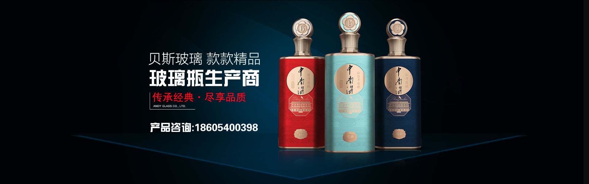 公司主要生產經營高白瓶、晶白料酒瓶、茶油瓶、噴涂瓶、電鍍瓶、小酒瓶等玻璃瓶系列。我公司生產的玻璃瓶品種多、質量好、價格低,不但可以在短時間內設計出新瓶型及制成新模具,并且還可以根據客戶的需求來進行設計制作,使得我公司的玻璃瓶產品受到市場的一致青睞。
